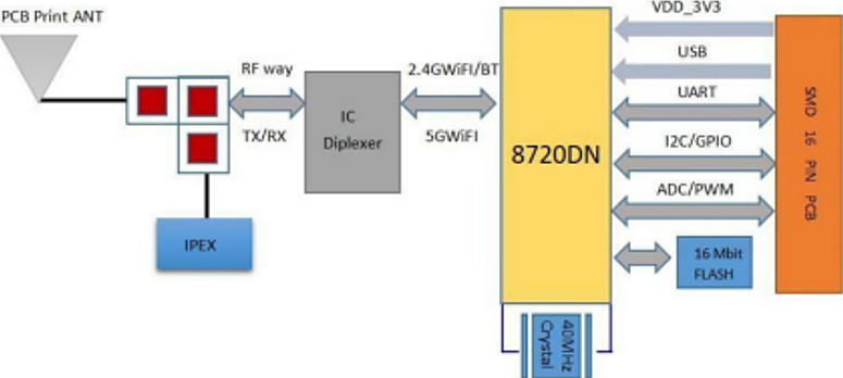 TinyCon6511是一款基于SoC方案WiFi/BLE/BLE5.0芯片設計的WiFi模塊,既能夠提供便捷的網絡接入功能,同時也能夠提供了強大的控制功能。支持雙頻(2.4GHz 或5GHz)WLAN 和低功耗藍牙 5.0 ,集成了ARM V8(兼容 Cortex-M4F)高性能MCU、ARM V8M(兼容 Cortex-M0)低功耗MCU、WLAN(802.11 a / b / g / n)、MAC,藍牙基帶和RF基帶,并提供了一組可配置的GPIO口,用于不同外圍設備的控制可以讓您的開發(fā)更靈活。一個完整的WiFi解決方案,可以獨立運行完成接入網絡、控制單元。